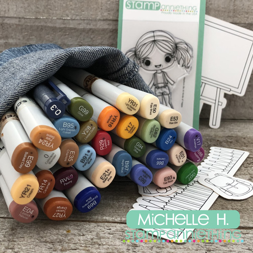 Hello Stamp AnnieThing fans I have another back to school cared to share today. I love the August release and needed to create one more card featuring these great stamps. Besides I didn’t break out any of the pre-printed die cuts at the start of the month and they are so fun and easy to color I wanted pull some out!