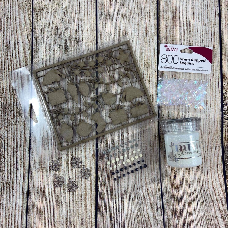 I used one of this months stencils and the new KK ink color of the month to create one of my background papers and threw on a few sequins from this month’s add on bundle to add some sparkle. (Never too much sparkle)