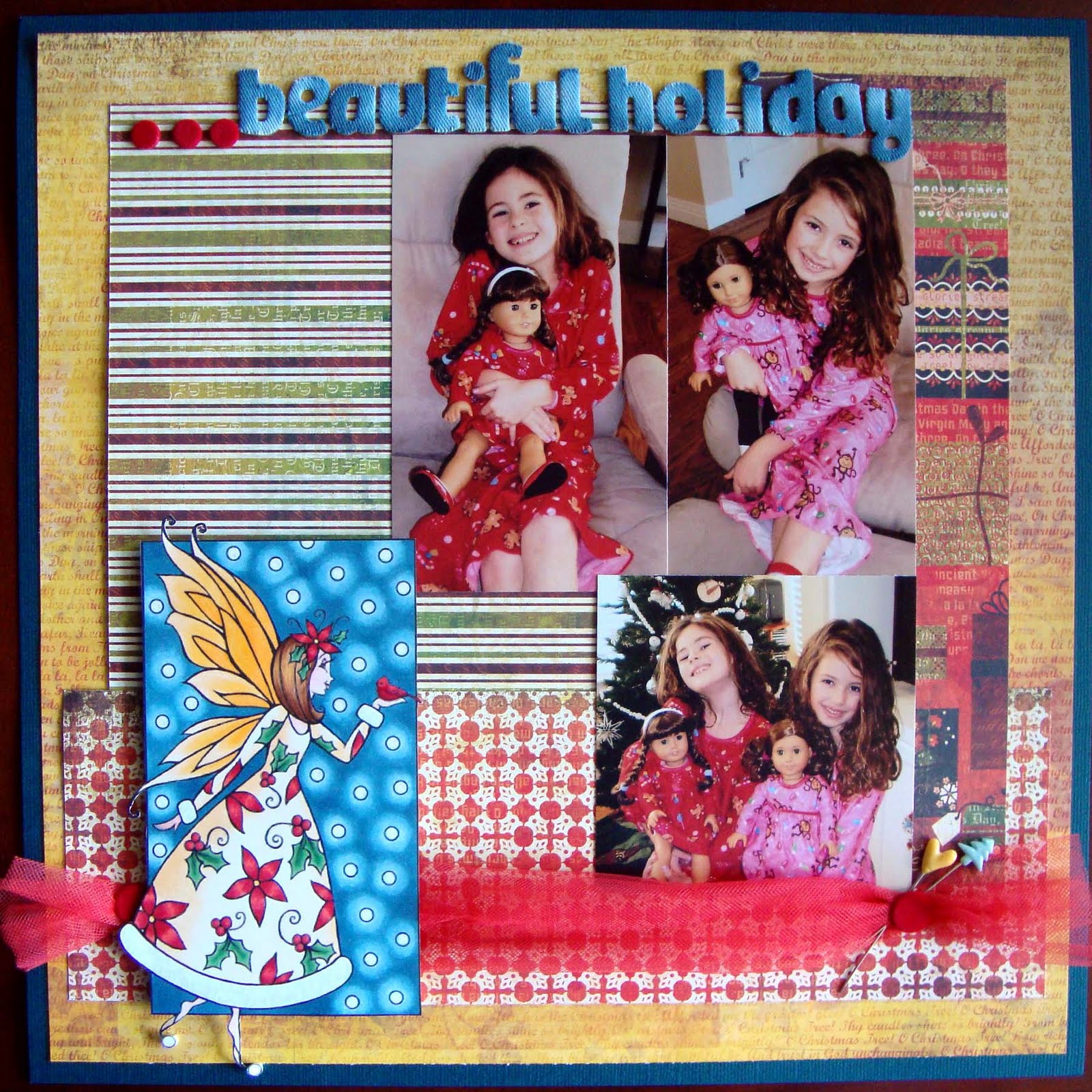 Today we are celebrating Christmas in July with Michelle Perkett. It was perfect timing for me to get started on some Christmas layouts and pick up Michelle’s new Chrissy the Christmas Spirit Fairy! The image is colored with Copic markers YR30, YR31, Y32, Y35, Y38, R000, R01, R22, R24, R29, R89, G24, G17, G28, E33, E35, E37, B91, B95, B97, C1 and an atyou glitter pen.
