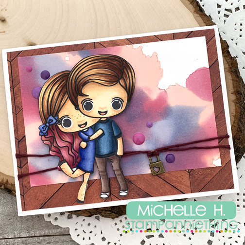 I colored up the image with Copic markers and with two people I tried to keep the color palette pretty simple. You can add too many colors to an image and make it look a little too busy. So keeping colors closer to each other or coordinating through an image can help. In this case I made the couple look a little like my husband and myself so the skin and hair choices were determined by us!