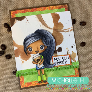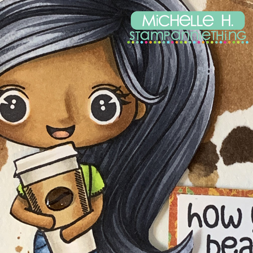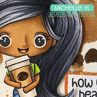 Here is a close up of Gracie to see her hair and skin a little better. I added a touch of Glossy Accents onto the coffee bean on the cup too.